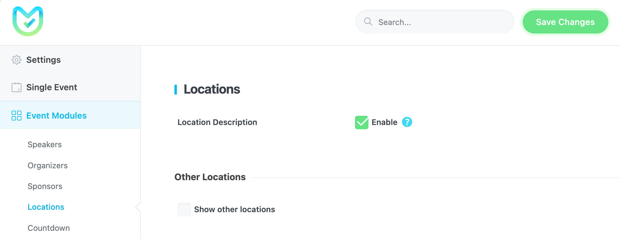 After installing the Advanced Location Addon, you will see a new menu in MEC’s settings.