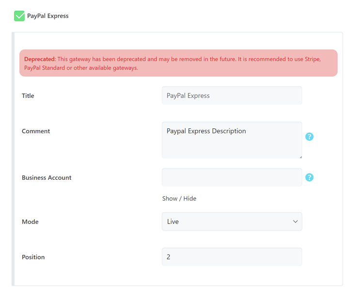 If you are encountering problems with the PayPal Standard gateway, you can enter your email here to receive a debugging email that contains information received from the PayPal API. Please be aware that this email may contain sensitive information, so proceed with caution.