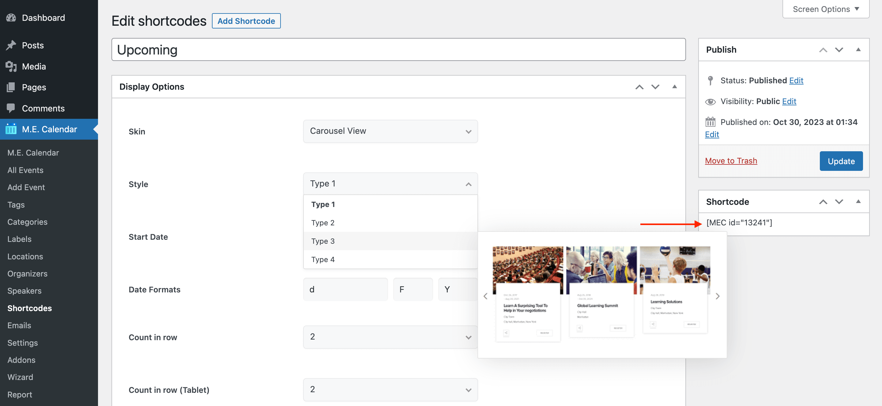 Here are the demos of Carousel View Skin in the Modern Events Calendar: