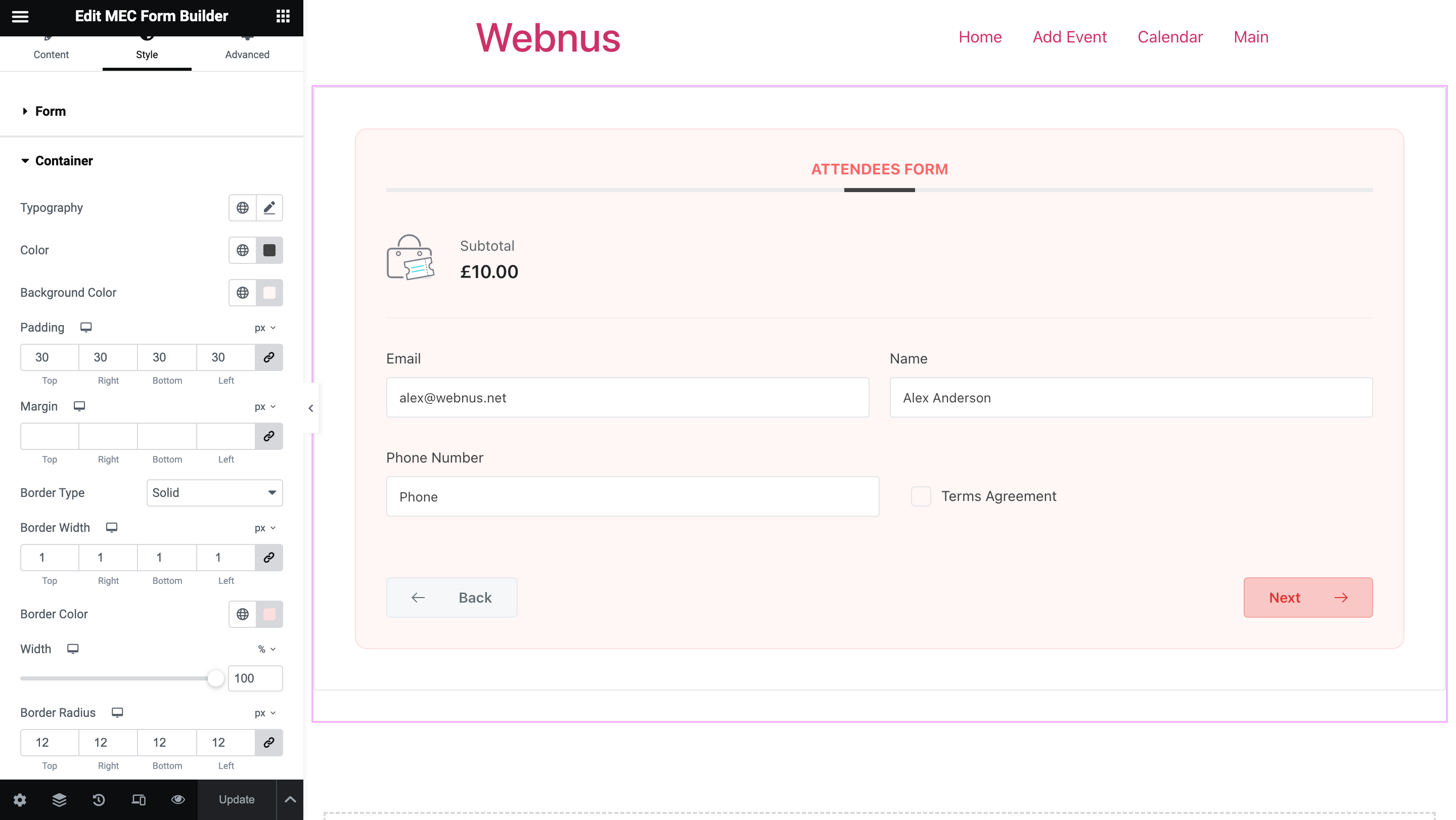2: Can I create a unique booking form for each event using the Elementor Form Builder Addon?