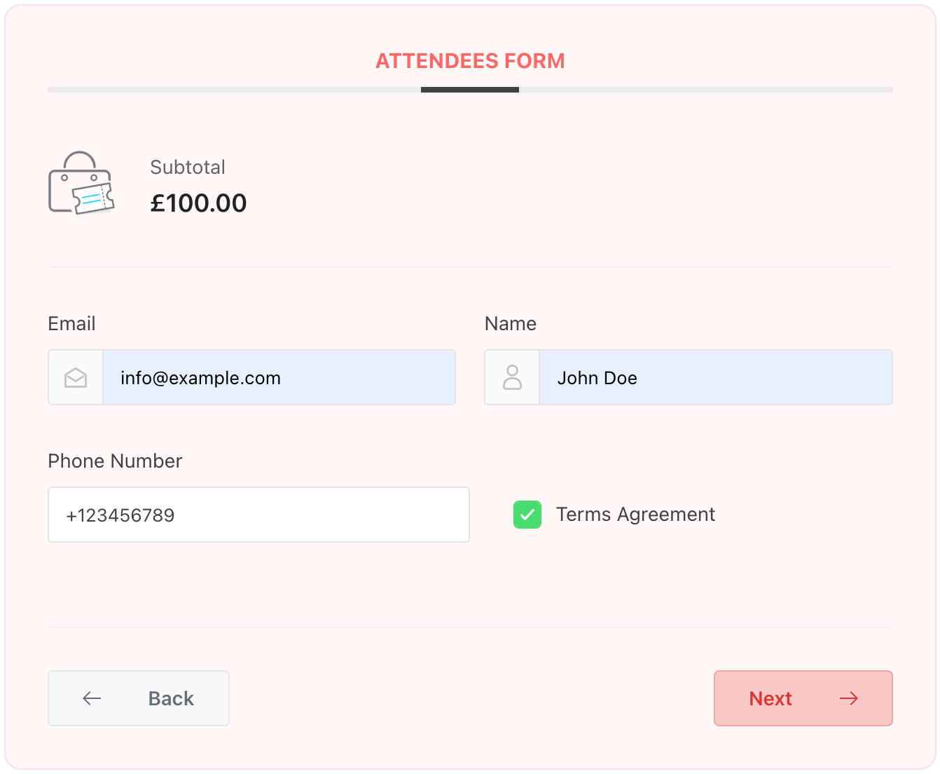Now, the design you have created will be implemented for all your event bookings.