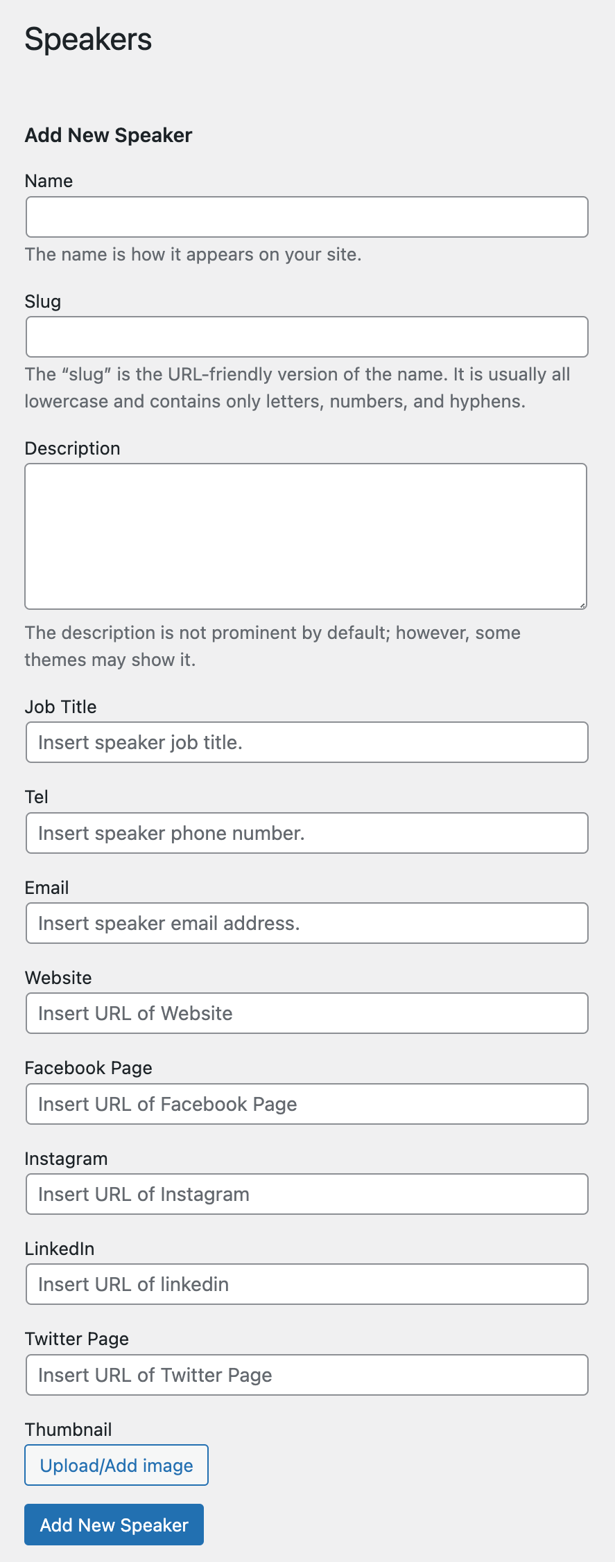 Add / Edit Speaker