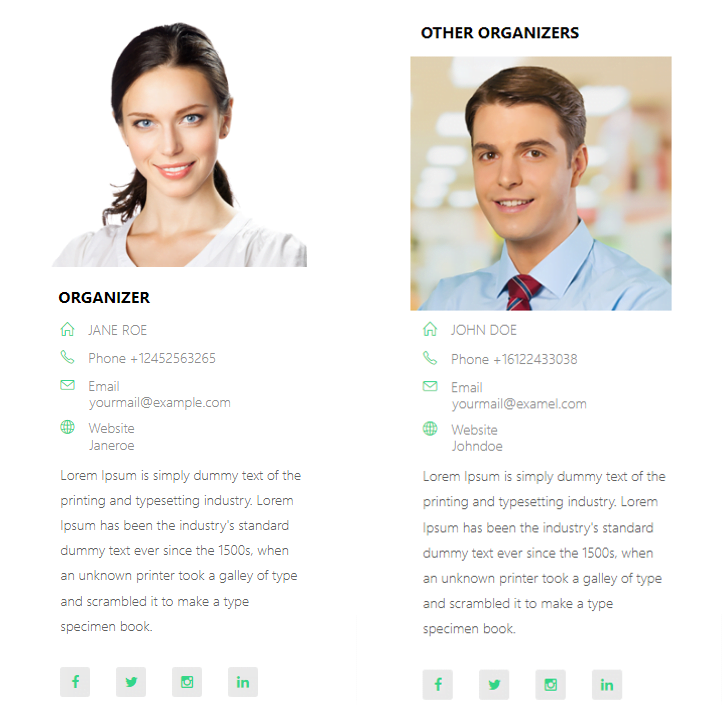 4\. Enable Display Social Links For Organizers: This option will display the social media links for other organizers.