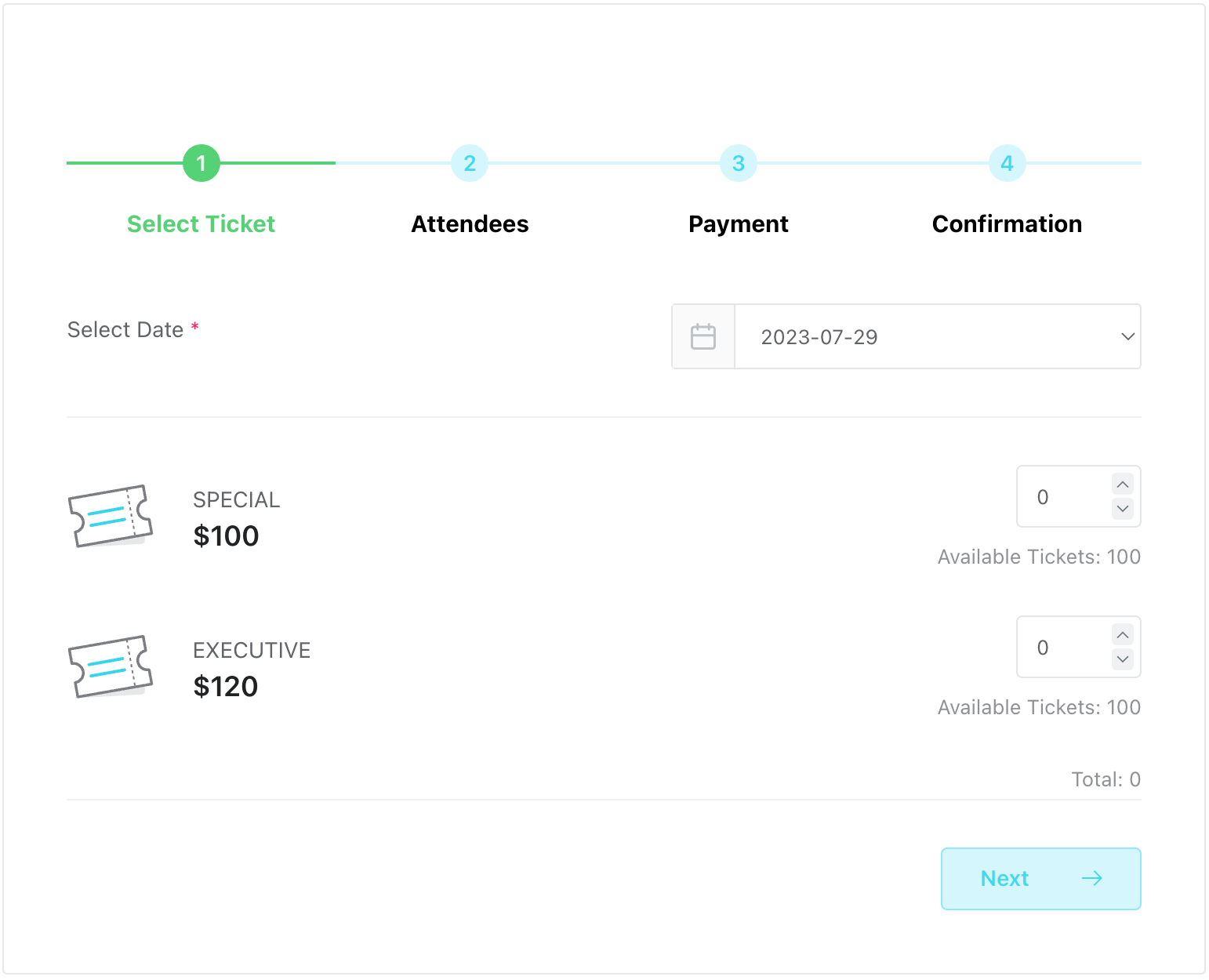 If enabled, a progress bar will be added to the booking module indicating the current step and the next steps. It won’t be displayed if there is only 1 step.