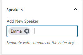 Then you can search for your speaker’s name under the Speakers section of your event settings page (just like a tag).