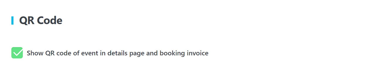 To enable this module, you need to go to MEC Settings > Event Modules > QR Code and check the Show QR code of event in details page and booking invoice option.