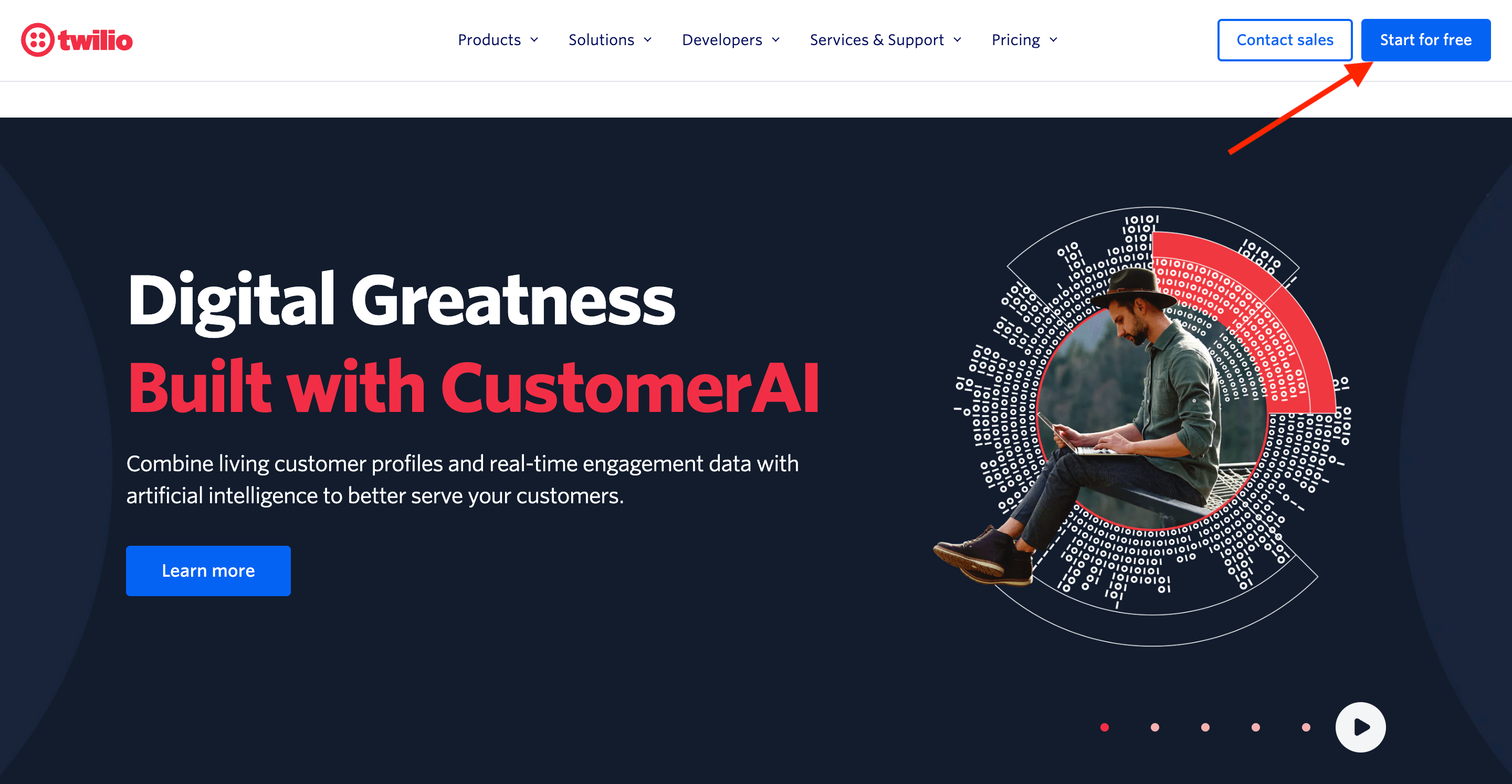 First, navigate to the Twilio website and click on the Start For Free button at the top right of the page.