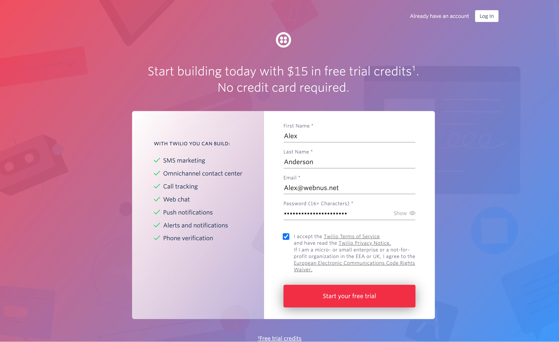 Creating Twilio Account