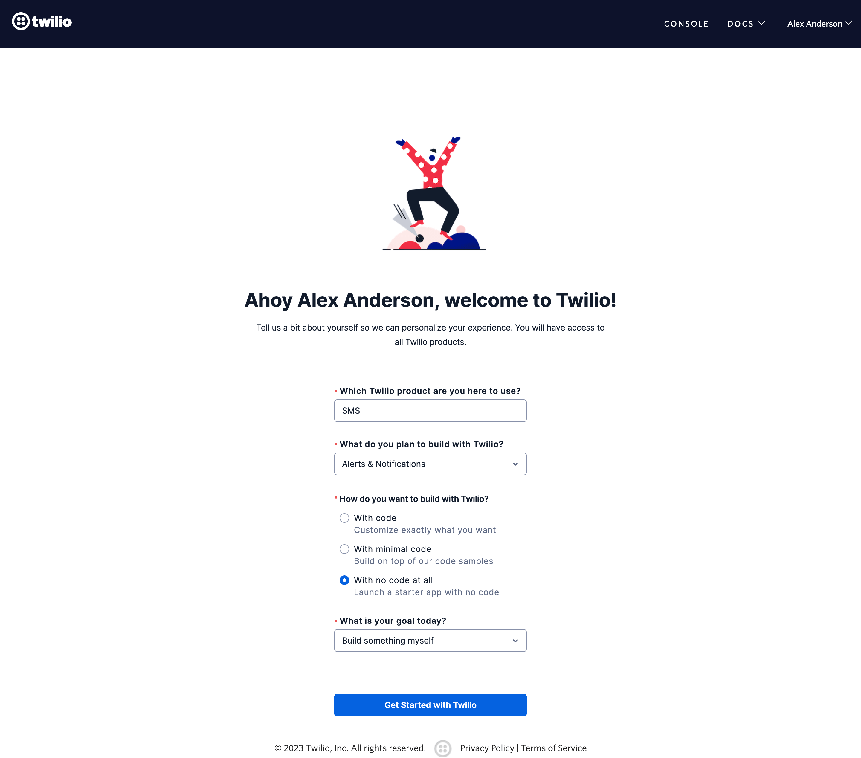 After finishing the registration process, you will be directed to your personal Twilio Console. From there, you can easily manage and personalize your account as per your preferences.