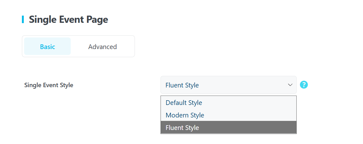 - Locate the Single Event Style dropdown and select Fluent Style.