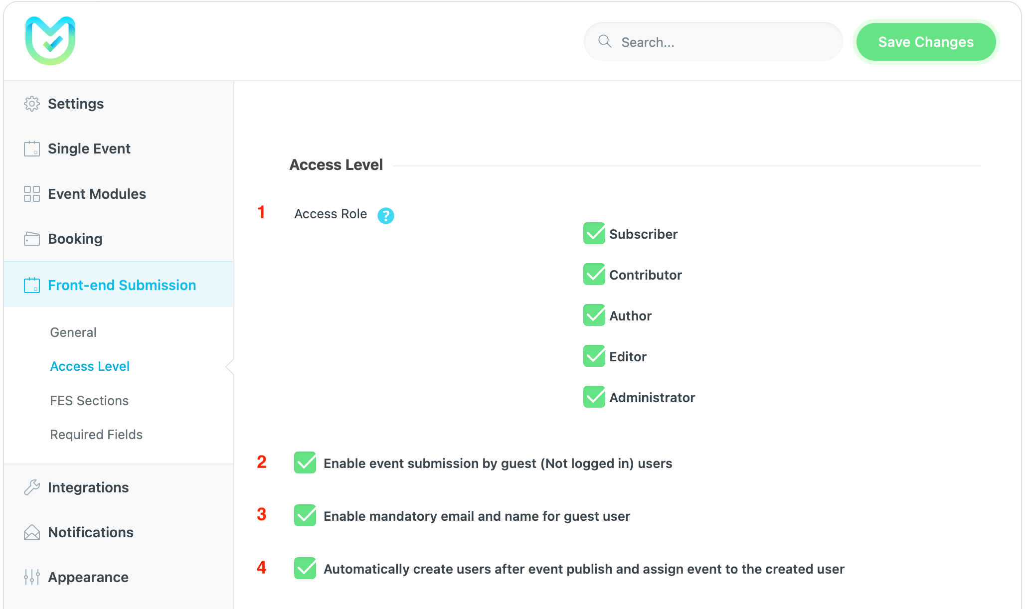 This option determines which user roles are able to add events using the FES Form.
