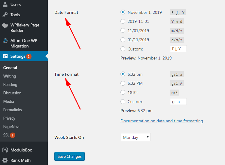 Note: If you want to change the date format on a single event page (front end of the single event), you need to go to **WordPress Dashboard > Settings > General > Date Format** (and also time).