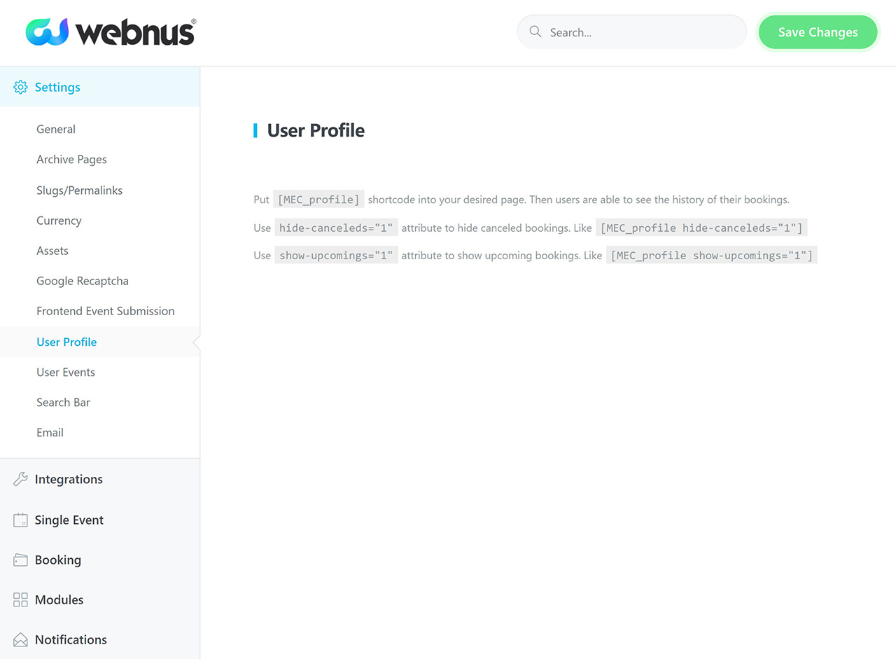 To set it up, go to MEC Settings and navigate to the Search option. Once you have set it up, you can use it on any page by simply adding the shortcode to that page. The shortcode will ensure that the function is displayed on that page.