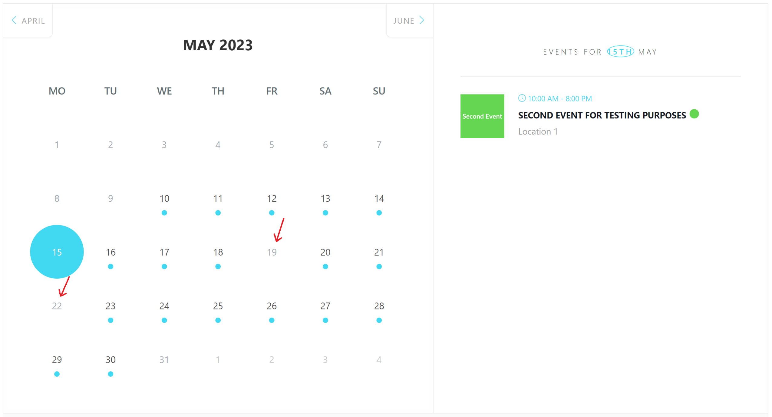 Advanced: Selecting a day during a week for an event and plus its monthly repeat along with selecting several different days. For example: repeating an event every month for the second Monday of each month or a monthly repeat for the event for the last Sunday and Saturday of each month.