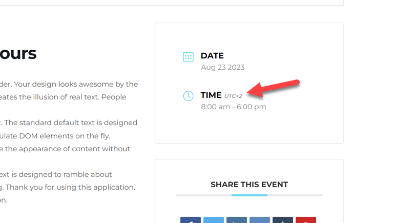 If your event time requires further explanation regarding, for example, the timezone or anything else, you can include this information in the Notes on the time field. This note will then be displayed alongside the event’s scheduled time.
