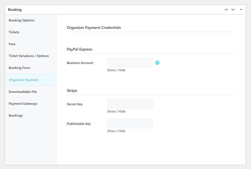 Organizer Payment Credentials