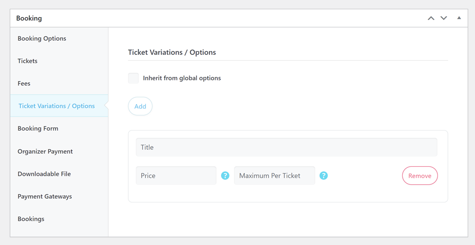 Note that the Booking section will only be visible if the Booking module has been activated in the MEC Setting > Booking. This section comprises all options pertaining to booking, ticket sales, and price calculation. It is worth noting that this option is exclusive to MEC Pro.