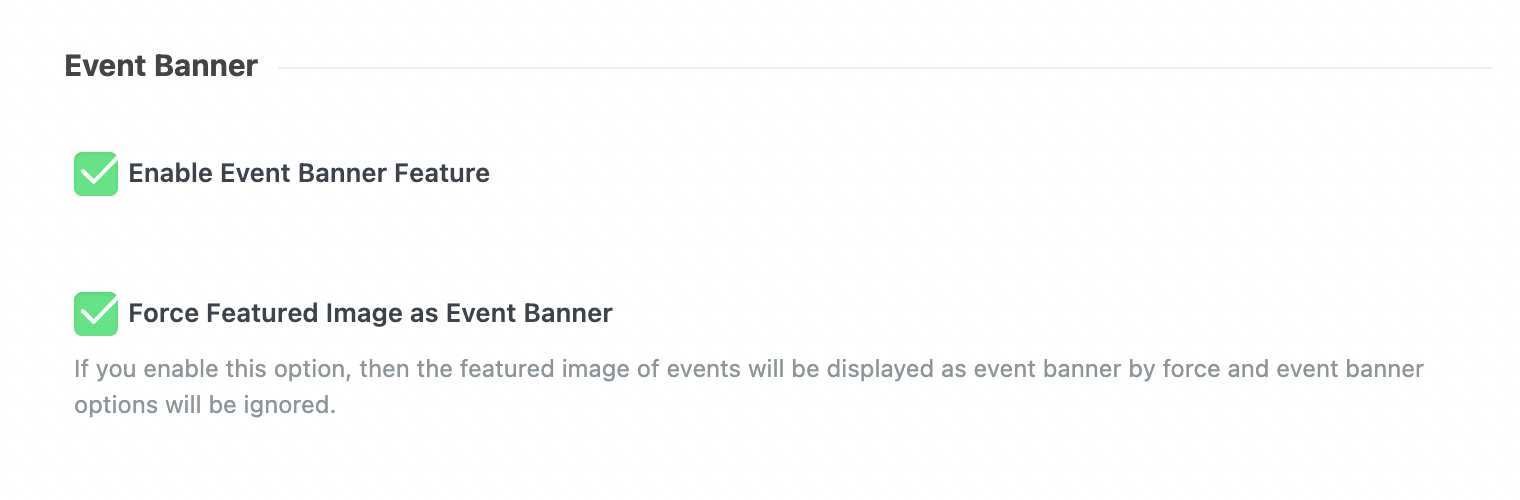 If you enable this option, then the featured image of events will be displayed as event banner by force and event banner options will be ignored. Navigate to MEC Settings > Single Event > Single Event Page > Advanced to enable this option.