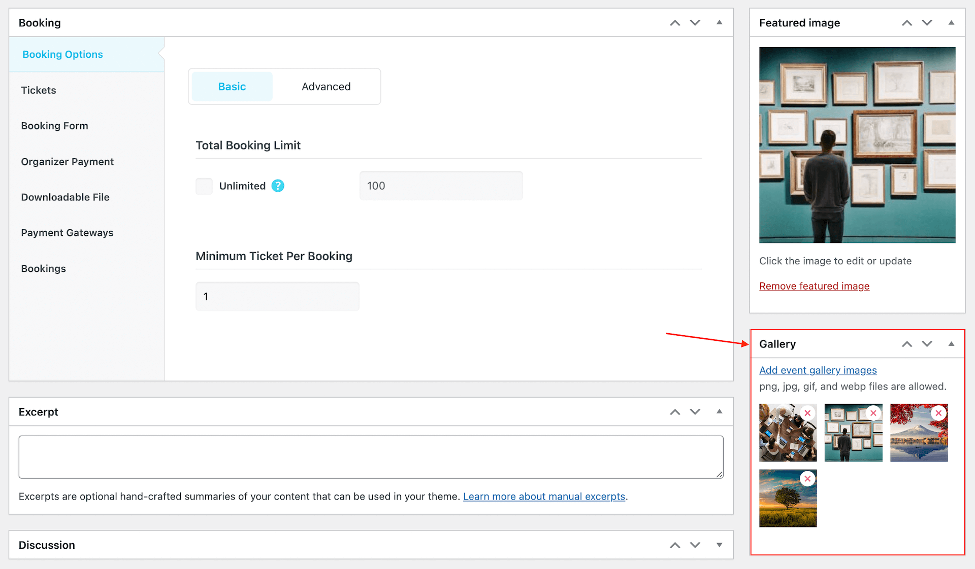 If you activate the Event gallery module from MEC Settings > Event Modules > Event Gallery, you will have this section on event add/edit page. Sometimes a photo is not enough to present the event and convey its mood to the audience, if you think so, then use this feature.