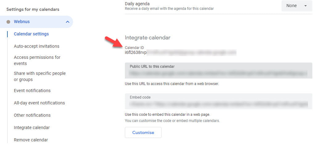 Then, enter the Calendar ID in the designated field. The Calendar ID can be found in your Google Calendar settings.