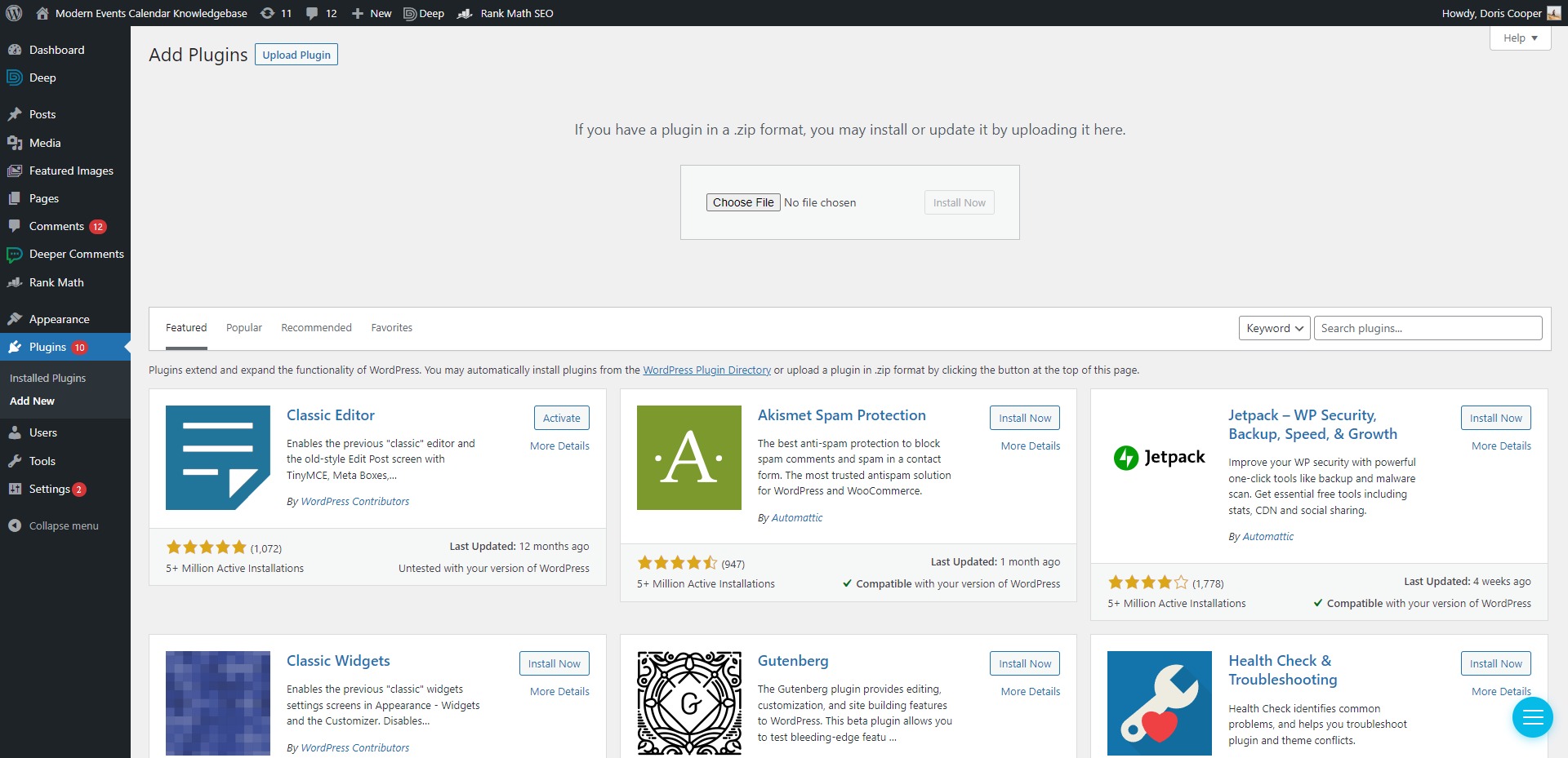 - Click on Choose File and browse for “modern-events-calendar.zip” or “addon_name.zip” on your computer, then click Install Now.
