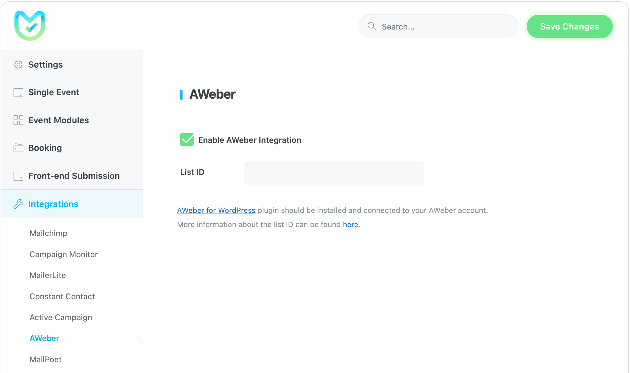 With the Modern Events Calendar AWeber integration, you can automatically add event submissions to your audience list. AWeber Documentation