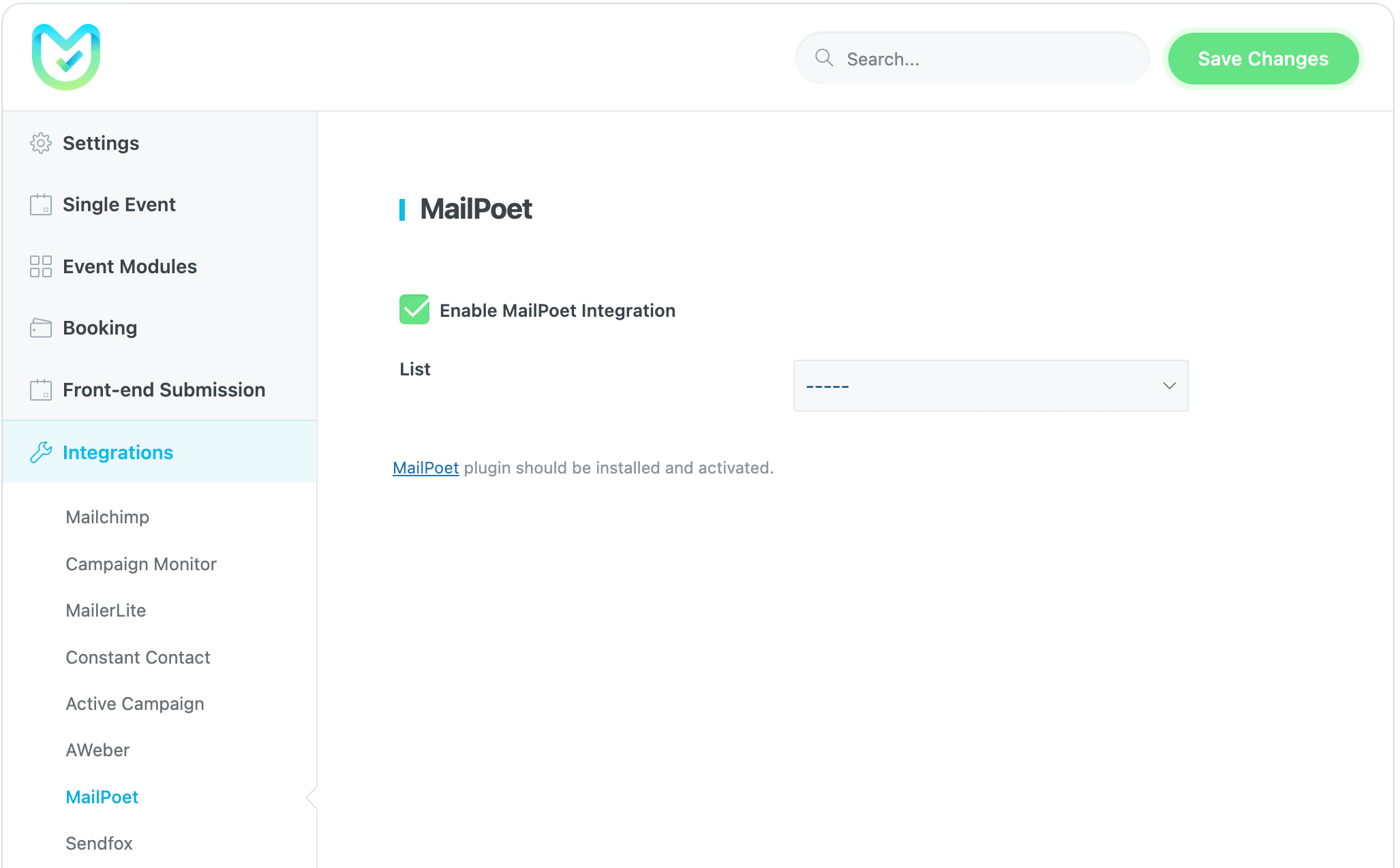 If you correctly connect your MailPoet account to your site, your users’ list will be shown in the MailPoet integration settings of MEC.