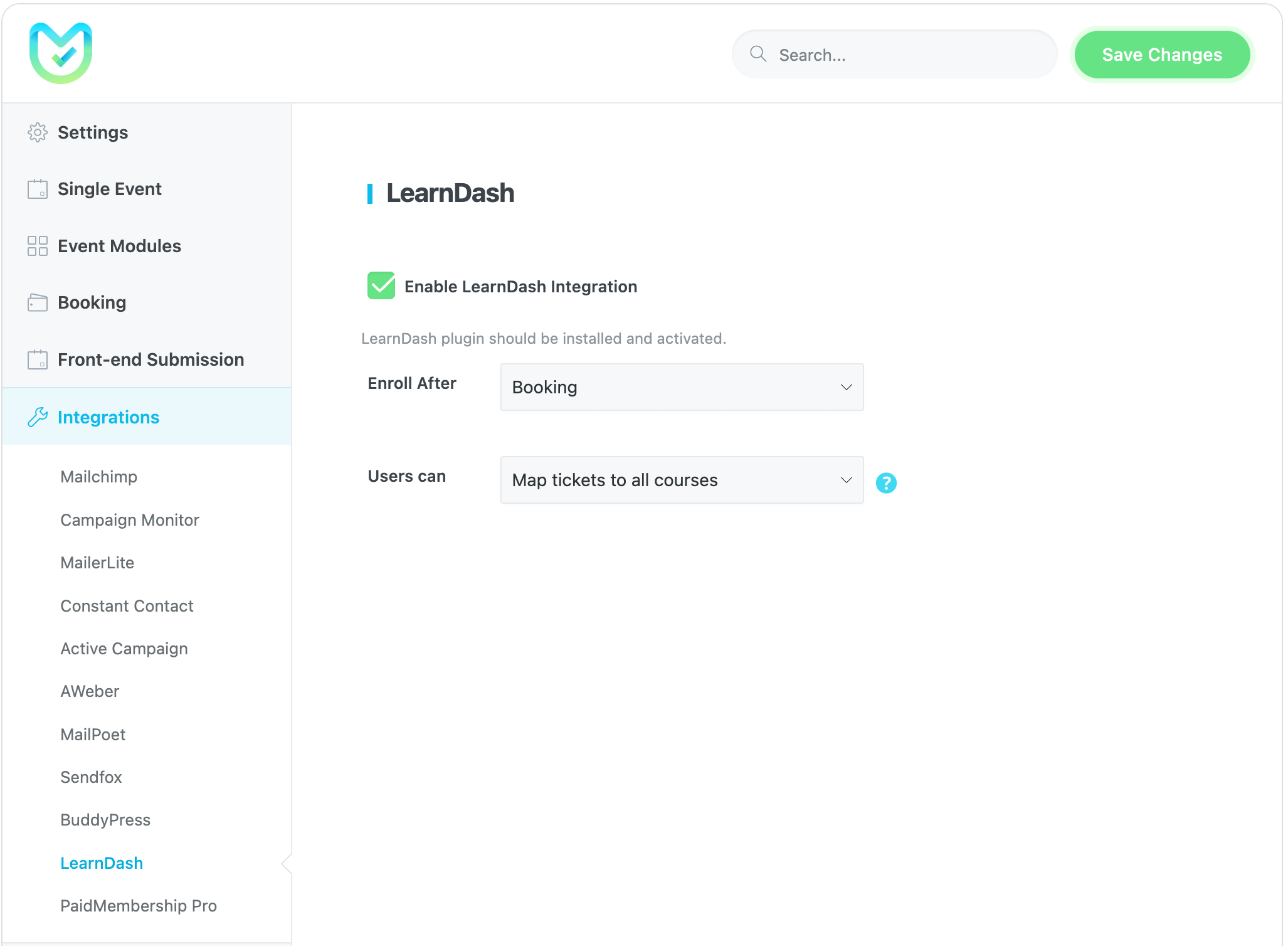 With LearnDash integration, you can link a course to any ticket and enroll the user in the LearnDash course after booking. LearnDash Documentation