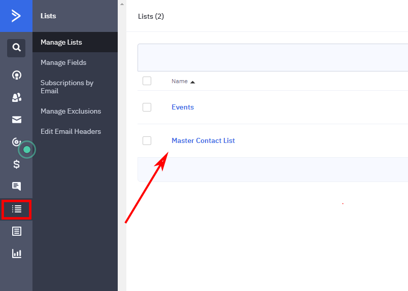 To receive your List ID, you’ll need to click on the list icon to view it: