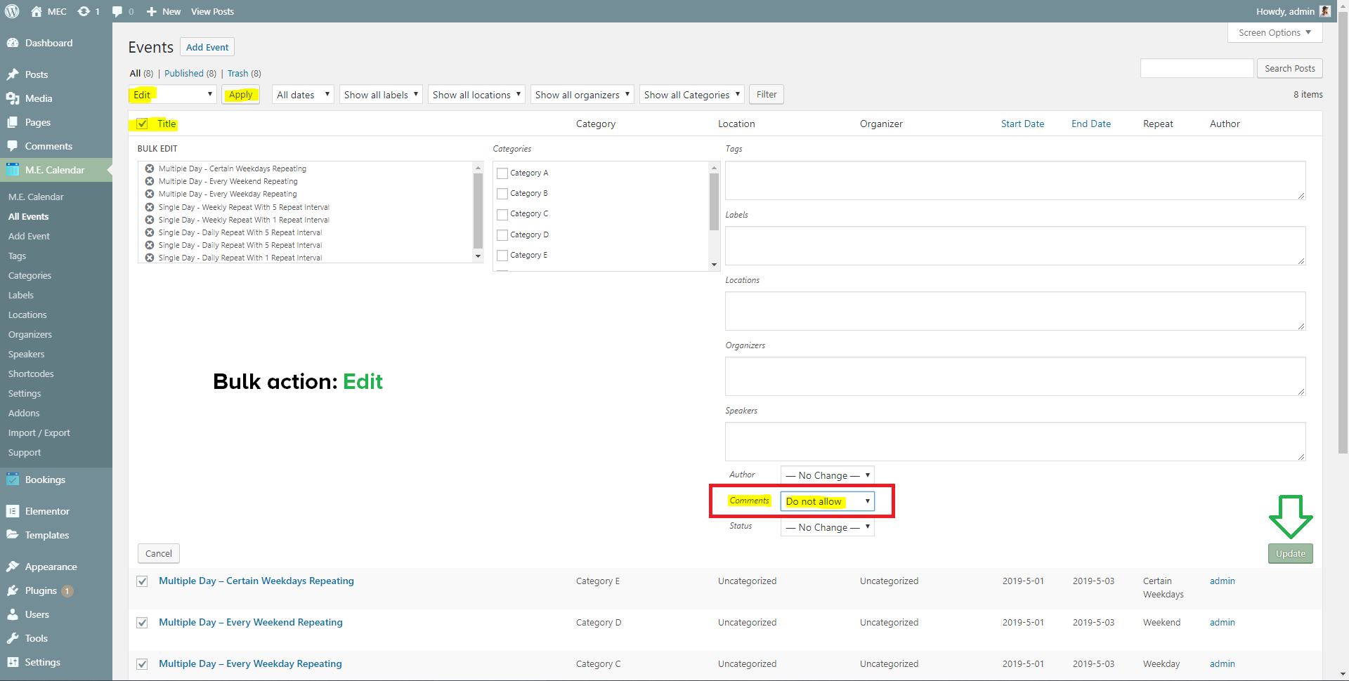 Removing comment box on single event page in modern calendar event can be done by following this visual instruction.