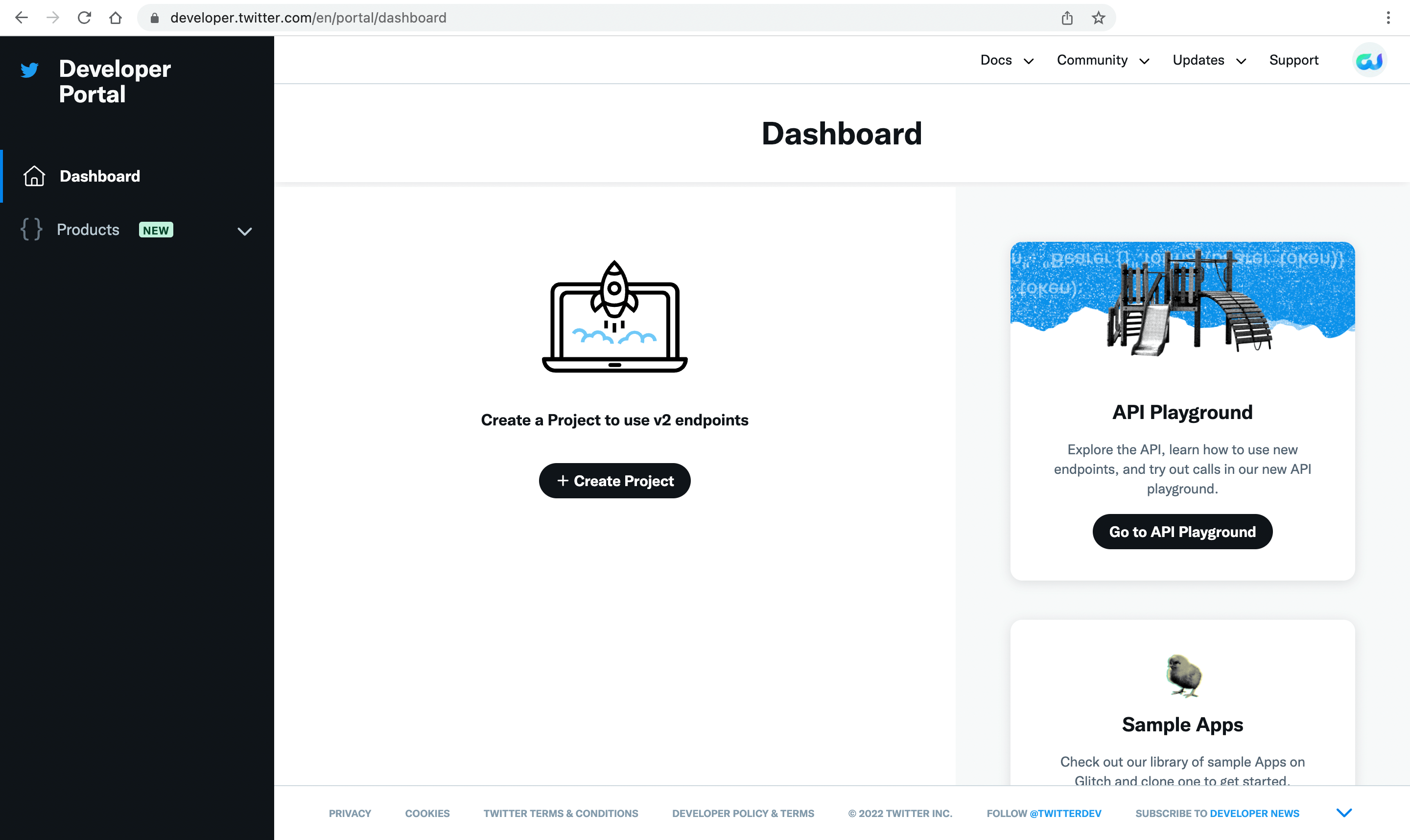 Once the developer account is created, go to your dashboard and click on Create Project.