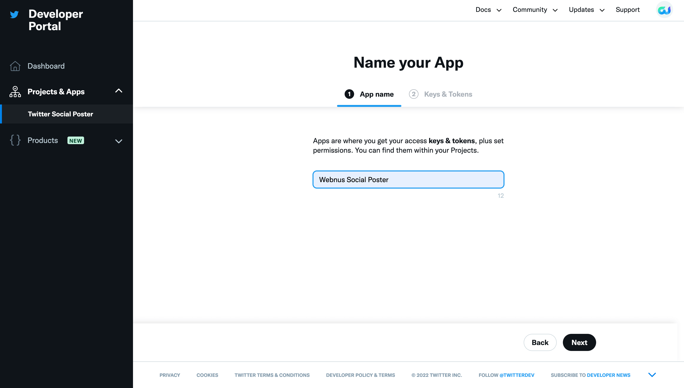 Here, we have to create an app. So enter a name for the app on the new page and click Next.