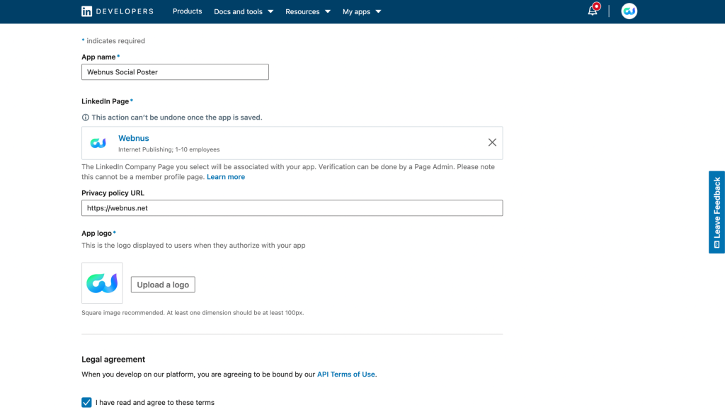 To begin, go to the LinkedIn Developer page and click on Create App.