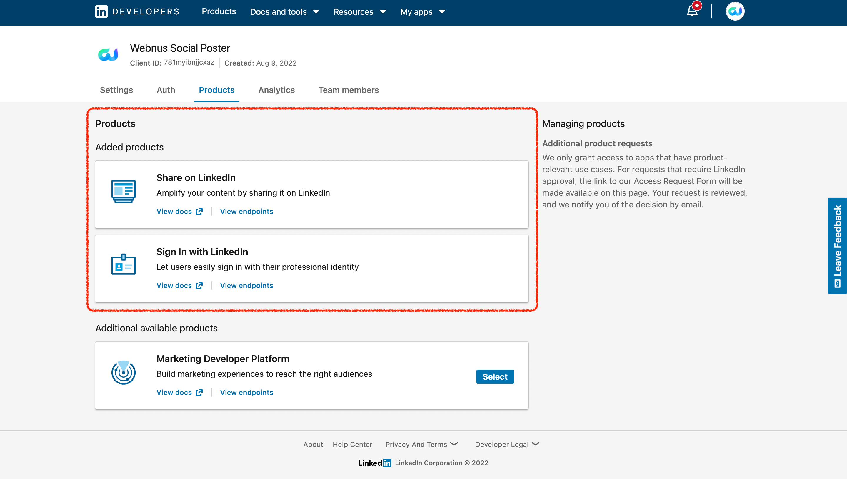 Finally, go to M.E. Calendar> Social Poster > Settings > LinkedIn and enter the API data that we received on this page.