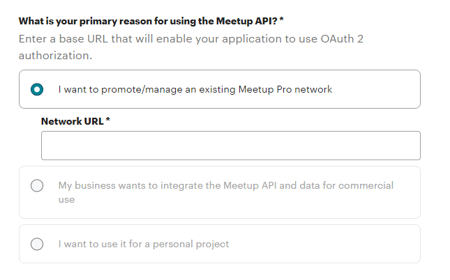 Next, create a group in Meetup and get the group’s slug from the address after approval.