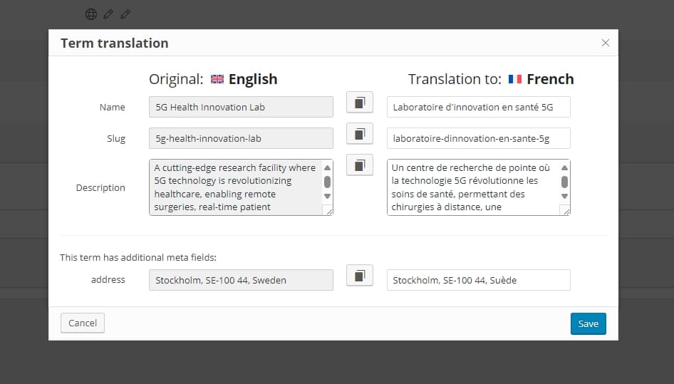 6\. The process remains the same for all other taxonomies and terms, allowing you to fully translate them using the WPML Taxonomy Translation tool.
