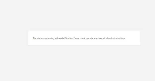 - If your debug is off and there is a Fatal Error on your website, you will get this message from WordPress and need to turn on your debug or go to Administrator Email and view the error message there: