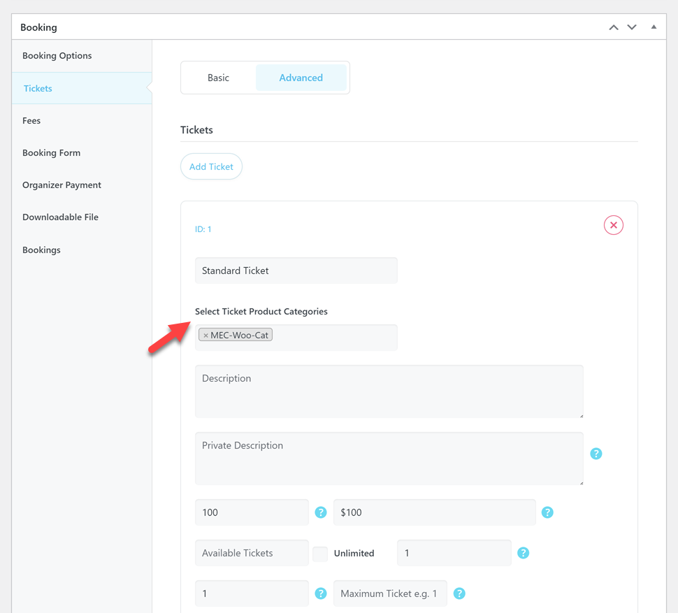 To configure the WooCommerce Integration addon, you need to activate the booking system. Please head over to MEC Settings > Booking and enable the booking module, save changes, and reload the page.