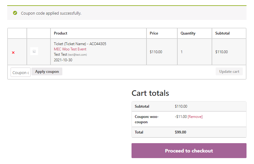 With the WooCommerce cart, you can buy tickets for MEC events by treating each ticket as a product (Virtual Product). It means that you can purchase both tickets and other WooCommerce products together.